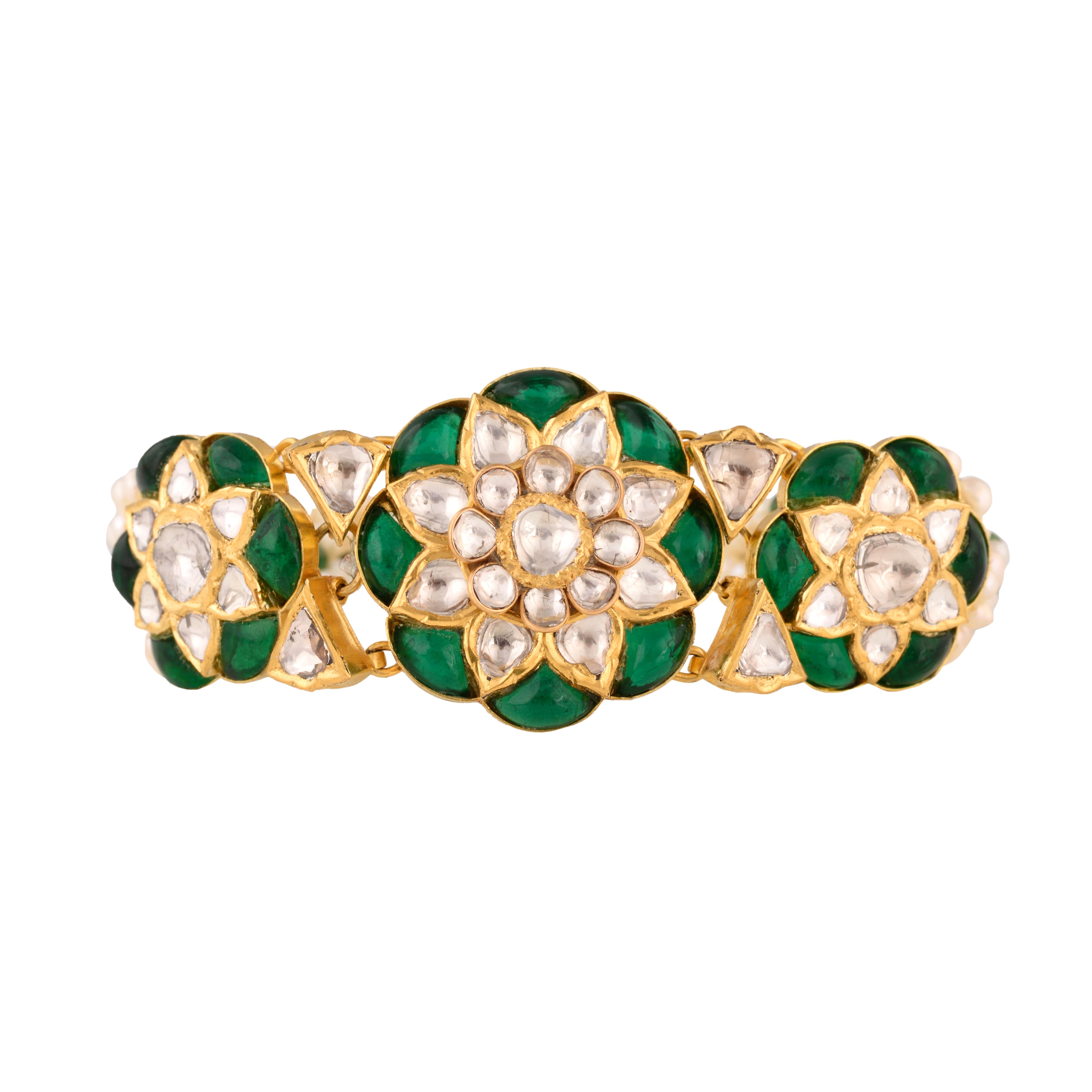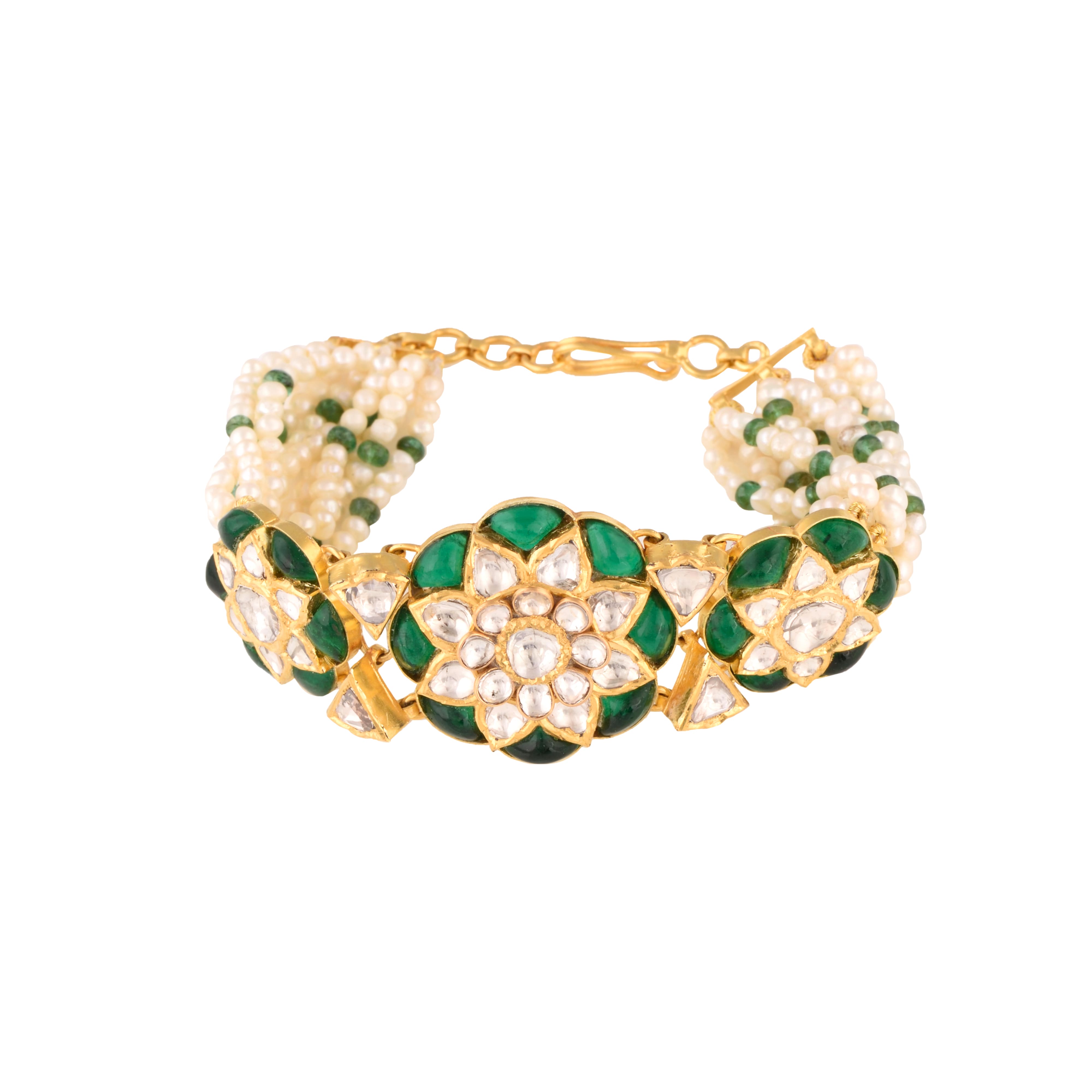 A piece of the Indian royalty for the keeps. Emeralds and polkis with South Sea Pearls put together to elegantly recreate a piece inspired by the rich Indian Heritage.