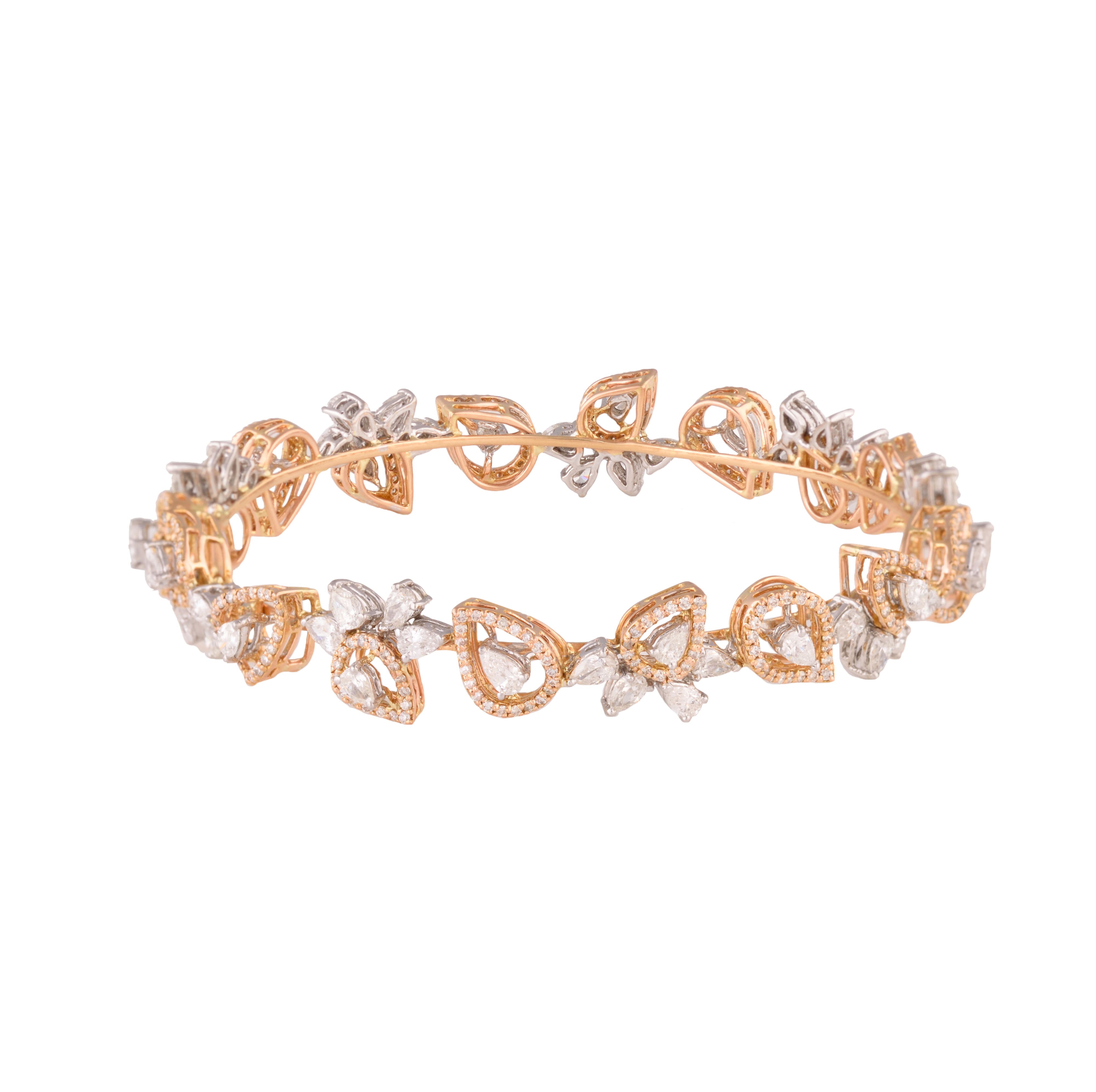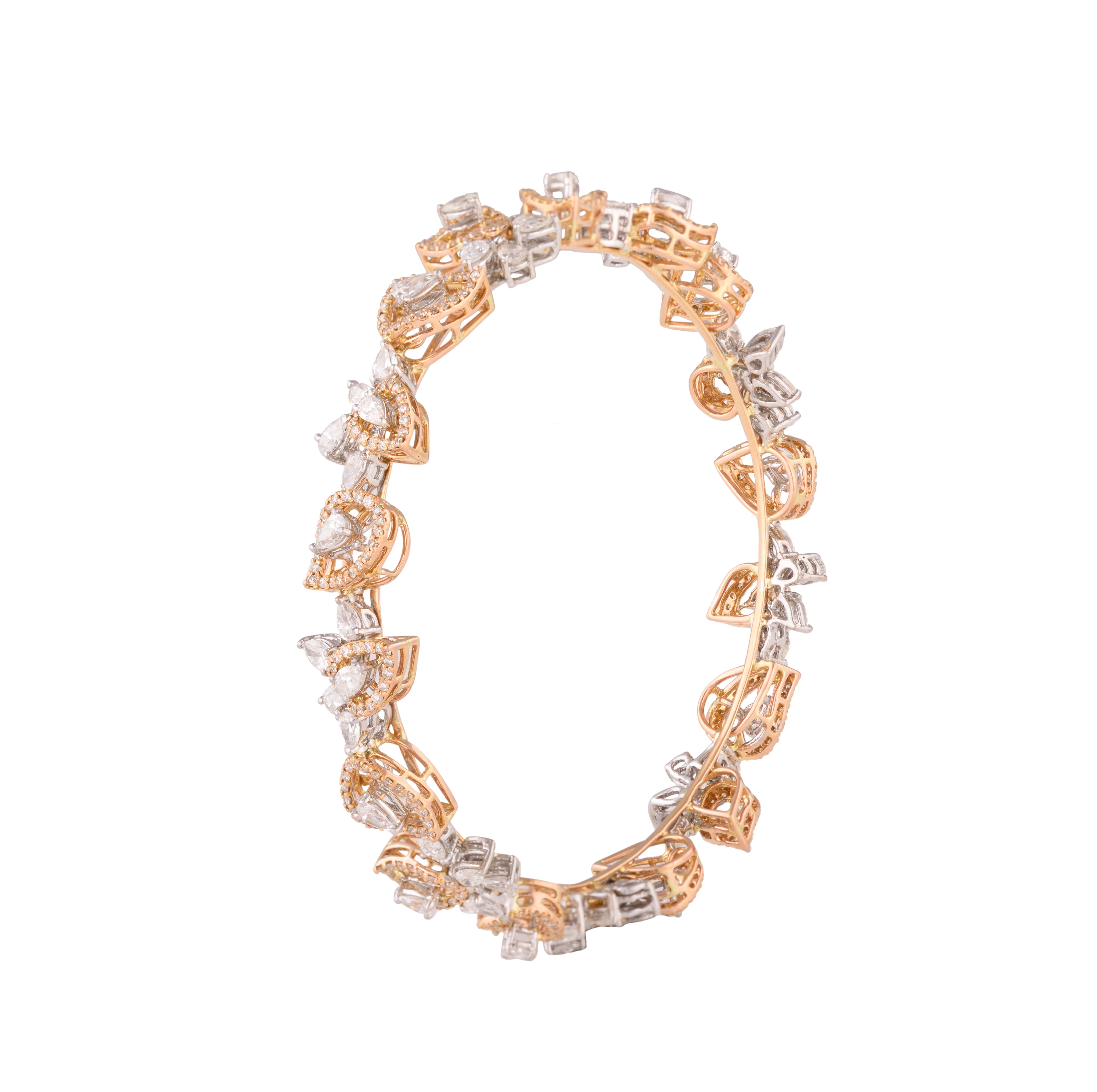 Wrap around your wrist in rows of Marquise, Pears and Round Diamonds. This resplendent cuff is handcrafted in 18KT Yellow Gold